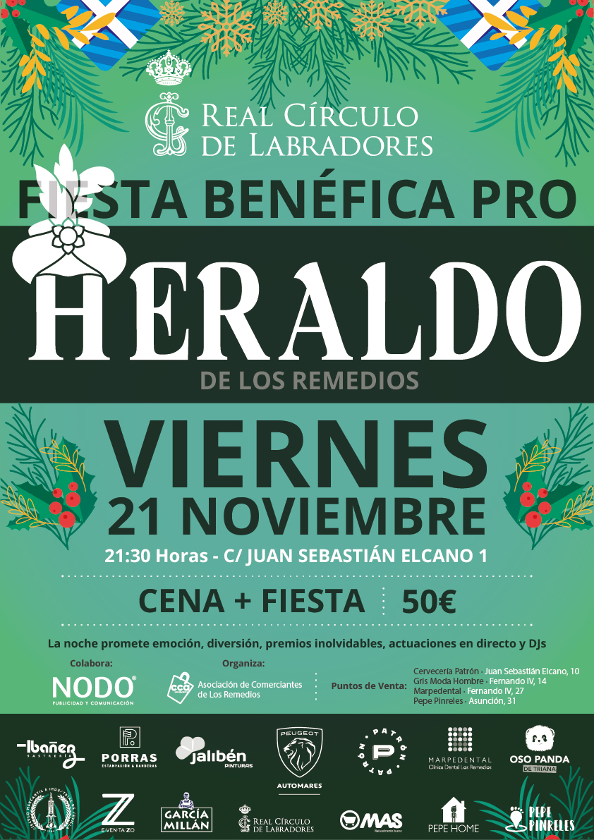 El próximo viernes 21 de noviembre, el Real Círculo de Labradores acogerá una noche muy especial a beneficio del Heraldo de los Remedios. Una cita solidaria donde la emoción, la diversión y la ilusión navideña se unen para apoyar esta entrañable tradición del barrio.
